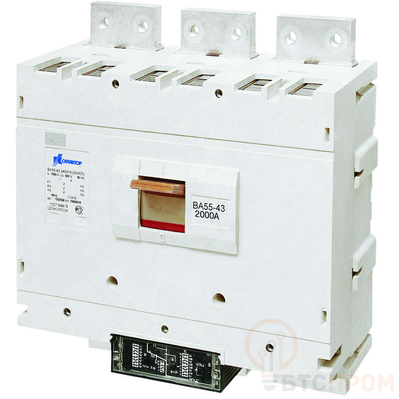 Выключатель автоматический ВА56-43-301110-20 — это современный трехполюсный аппарат, предназначенный для надежной защиты электрических цепей в промышленных и коммерческих сетях. Номинальный ток устройства составляет 2000А, а рабочее напряжение — до 690В, что позволяет использовать его в мощных распределительных системах.