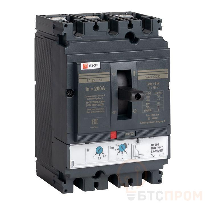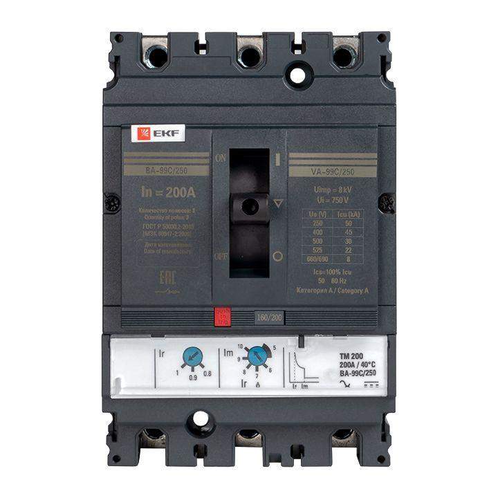 Выключатель ВА-99С выполнен в виде моноблока и состоит из основания и крышки с фальш-панелью, в которой имеется окно для рукоятки управления и толкатель кнопки «Тест» – для проверки механизма отключения выключателя.Основание выполнено из термостойкой пластмассы, не поддерживающей горение и являющейся несущей конструкцией для присоединительных зажимов, блок ротоактивных контактов с двумя дугогасительными камерами представляет собой жесткую сборку в отдельном корпусе, механизма управления, блока защиты от сверхтоков и перегрузки (расцепителя). Крышка закрывает все подвижные элементы механизма управления и внутренние токоведущие части.