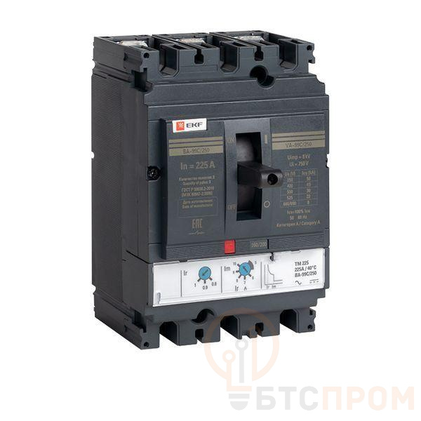 Выключатель ВА-99С выполнен в виде моноблока и состоит из основания и крышки с фальш-панелью, в которой имеется окно для рукоятки управления и толкатель кнопки «Тест» – для проверки механизма отключения выключателя.Основание выполнено из термостойкой пластмассы, не поддерживающей горение и являющейся несущей конструкцией для присоединительных зажимов, блок ротоактивных контактов с двумя дугогасительными камерами представляет собой жесткую сборку в отдельном корпусе, механизма управления, блока защиты от сверхтоков и перегрузки (расцепителя). Крышка закрывает все подвижные элементы механизма управления и внутренние токоведущие части.