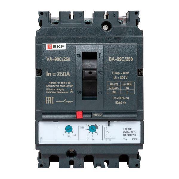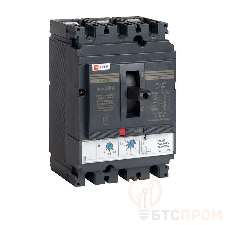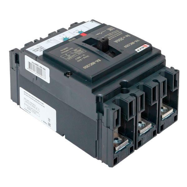 Выключатель ВА-99С выполнен в виде моноблока и состоит из основания и крышки с фальш-панелью, в которой имеется окно для рукоятки управления и толкатель кнопки «Тест» – для проверки механизма отключения выключателя.Основание выполнено из термостойкой пластмассы, не поддерживающей горение и являющейся несущей конструкцией для присоединительных зажимов, блок ротоактивных контактов с двумя дугогасительными камерами представляет собой жесткую сборку в отдельном корпусе, механизма управления, блока защиты от сверхтоков и перегрузки (расцепителя). Крышка закрывает все подвижные элементы механизма управления и внутренние токоведущие части.