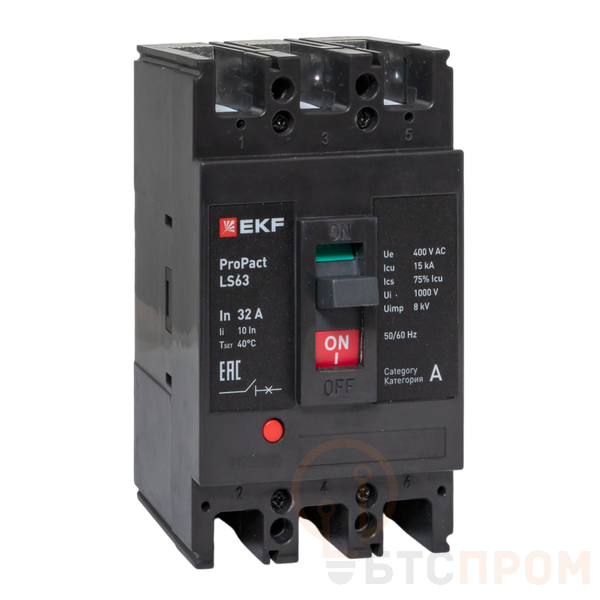 Выключатель LS ProPact выполнен в виде моноблока и состоит из основания и крышки с фальшпанелью, в которой имеется окно для рукоятки управления и толкатель кнопки «Тест» - проверки механизма отключения выключателя. Основание выполнено из термостойкой пластмассы, не поддерживающей горение и являющейся несущей конструкцией для присоединительных зажимов, неподвижных и подвижных контактов с системой дугогашения, механизма управления, блока защиты от сверхтоков. Крышка закрывает все подвижные элементы механизма управления и внутренние токоведущие части. Данная серия не подразумевает возможность установки аксессуаров
