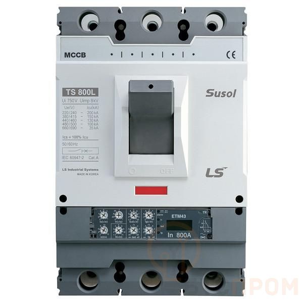 Автоматический выключатель LS Electric TS800N ETM43 — это надежный трехполюсный аппарат, предназначенный для защиты электрических цепей промышленного назначения. Номинальный ток устройства составляет 800 А, а высокая отключающая способность 65 кА обеспечивает эффективное предохранение сети от последствий коротких замыканий и токовых перегрузок.