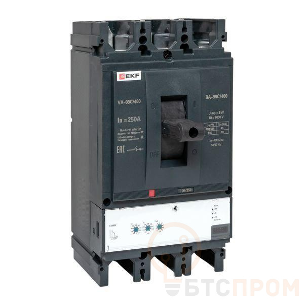 Выключатель ВА-99С выполнен в виде моноблока и состоит из основания и крышки с фальш-панелью, в которой имеется окно для рукоятки управления и толкатель кнопки «Тест» – для проверки механизма отключения выключателя.Основание выполнено из термостойкой пластмассы, не поддерживающей горение и являющейся несущей конструкцией для присоединительных зажимов, блок ротоактивных контактов с двумя дугогасительными камерами представляет собой жесткую сборку в отдельном корпусе, механизма управления, блока защиты от сверхтоков и перегрузки (расцепителя). Крышка закрывает все подвижные элементы механизма управления и внутренние токоведущие части.