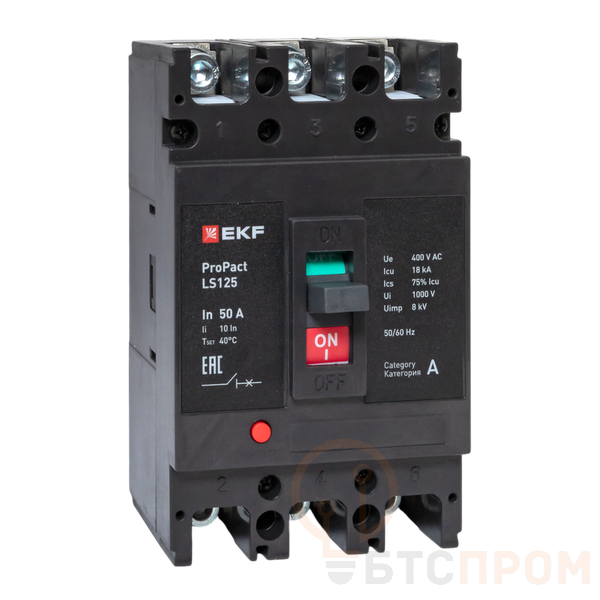 Выключатель LS ProPact выполнен в виде моноблока и состоит из основания и крышки с фальшпанелью, в которой имеется окно для рукоятки управления и толкатель кнопки «Тест» - проверки механизма отключения выключателя. Основание выполнено из термостойкой пластмассы, не поддерживающей горение и являющейся несущей конструкцией для присоединительных зажимов, неподвижных и подвижных контактов с системой дугогашения, механизма управления, блока защиты от сверхтоков. Крышка закрывает все подвижные элементы механизма управления и внутренние токоведущие части. Данная серия не подразумевает возможность установки аксессуаров