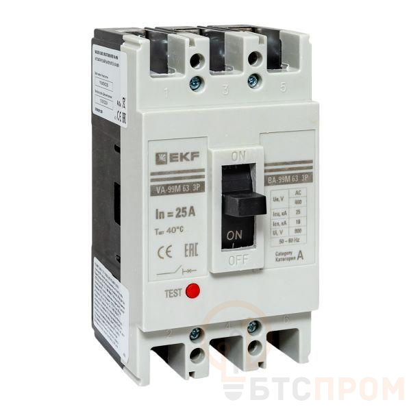 Выключатель ВА-99М выполнен в виде моноблока и состоит из основания и крышки с фальшпанелью, в которой имеется окно для рукоятки управления и толкатель кнопки «Тест» - проверки механизма отключения выключателя. Основание выполнено из термостойкой пластмассы, не поддерживающей горение и являющейся несущей конструкцией для присоединительных зажимов, неподвижных и подвижных контактов с системой дугогашения, механизма управления, блока защиты от сверхтоков. Крышка закрывает все подвижные элементы механизма управления и внутренние токоведущие части.