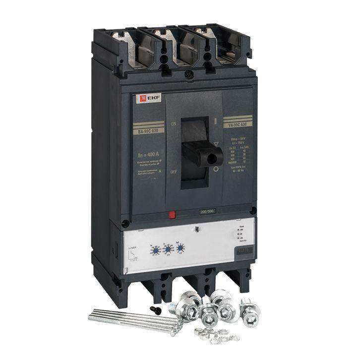 Выключатель ВА-99С выполнен в виде моноблока и состоит из основания и крышки с фальш-панелью, в которой имеется окно для рукоятки управления и толкатель кнопки «Тест» – для проверки механизма отключения выключателя.Основание выполнено из термостойкой пластмассы, не поддерживающей горение и являющейся несущей конструкцией для присоединительных зажимов, блок ротоактивных контактов с двумя дугогасительными камерами представляет собой жесткую сборку в отдельном корпусе, механизма управления, блока защиты от сверхтоков и перегрузки (расцепителя). Крышка закрывает все подвижные элементы механизма управления и внутренние токоведущие части.