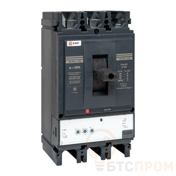Выключатель ВА-99С выполнен в виде моноблока и состоит из основания и крышки с фальш-панелью, в которой имеется окно для рукоятки управления и толкатель кнопки «Тест» – для проверки механизма отключения выключателя.Основание выполнено из термостойкой пластмассы, не поддерживающей горение и являющейся несущей конструкцией для присоединительных зажимов, блок ротоактивных контактов с двумя дугогасительными камерами представляет собой жесткую сборку в отдельном корпусе, механизма управления, блока защиты от сверхтоков и перегрузки (расцепителя). Крышка закрывает все подвижные элементы механизма управления и внутренние токоведущие части.