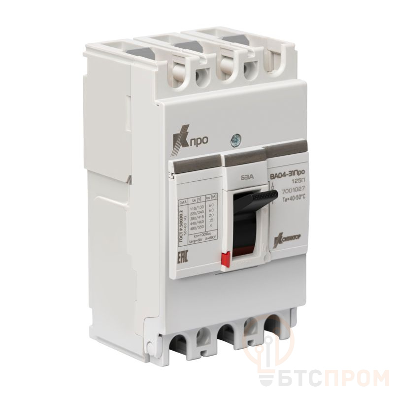 Выключатель автоматический 3п 63А 20кА ВА04-31 Про 125П Контактор 7001027 фото в каталоге от BTSprom.by