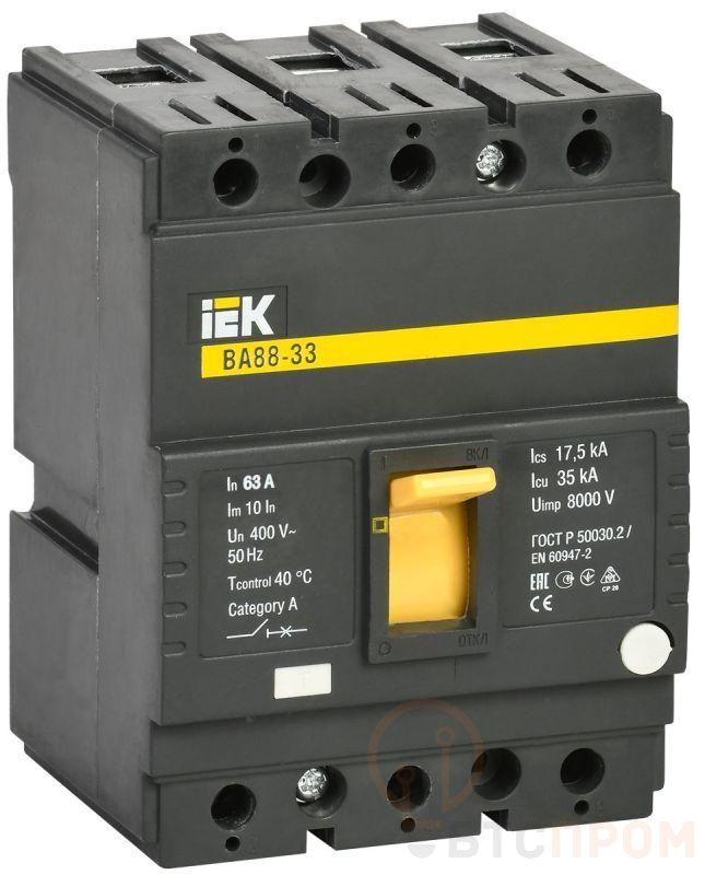 Автоматические выключатели ВА88 предназначены для проведения тока в нормальном режиме и отключения тока при коротких замыканиях, перегрузке, недопустимых снижениях напряжения, а также для оперативных включений и отключений участков электрических цепей и рассчитаны для эксплуатации в электроустановках с номинальным рабочим напряжением до 400 В и на номинальные токи от 12,5 до 1600 А. Соответствуют требованиям ГОСТ Р 50030.2.