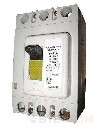 Выключатель автоматический 3п 80А Im=1000А 20кА ВА04-36 340010 660В передн. подкл.: Cu шина; кабель с каб. наконечн. Контактор 1020710