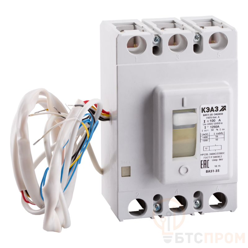 Выключатель автоматический 3п 400А 2500Im 20кА ВА51-35М3-341810 УХЛ3 690В AC НР=24В AC/DC КЭАЗ 256047