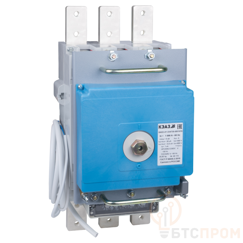 Выключатель автоматический 3п 400А 135кА ВА53-41-334730 УХЛ3 690В AC НР=230В AC/220В DC ПЭ230AC КЭАЗ 233579