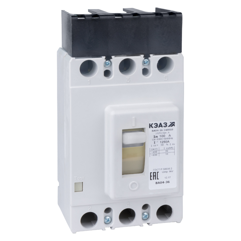 Блочный автоматический 3 полюсный выключатель переменного тока с предельной коммутационной способностью при переменном токе 8 кА на номинальный ток 40 А.