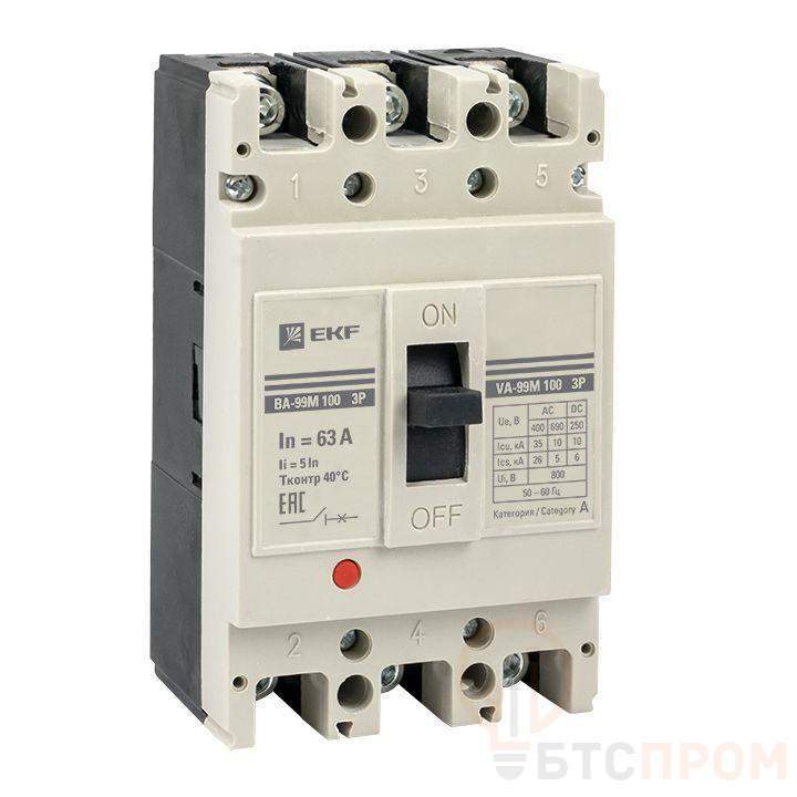 Выключатель автоматический 4п 100/16А 5In 35кА ВА-99М PROxima EKF mccb99-4P5In100-16m фото в каталоге от BTSprom.by
