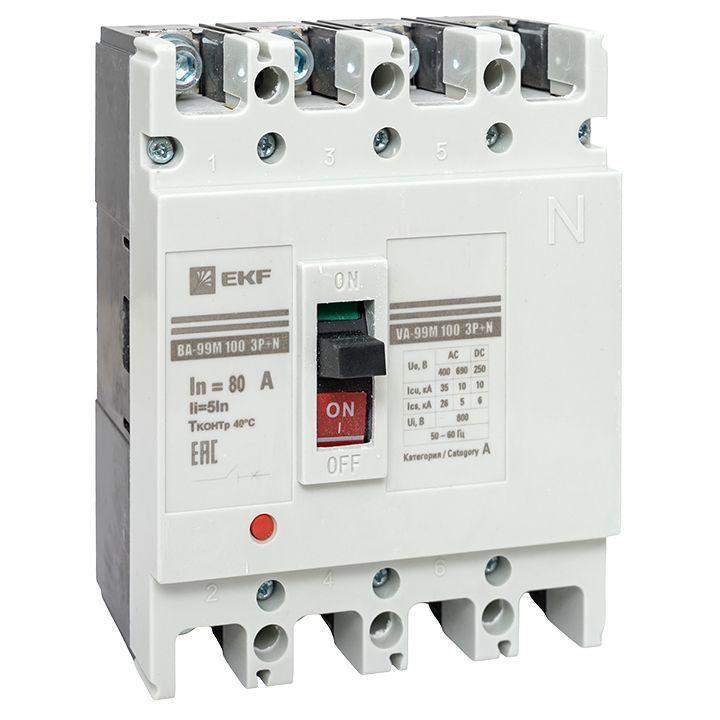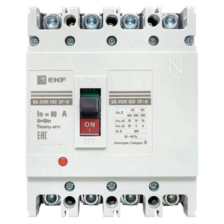 –Выключатель автоматический 4п 100/80А 5In 35кА ВА-99М PROxima EKF mccb99-4P5In100-80m
