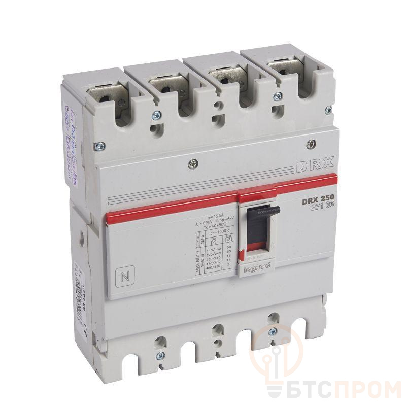 Автоматический выключатель Legrand DRX250 — это надежный четырехполюсный аппарат, предназначенный для защиты электрических цепей в промышленных и коммерческих распределительных сетях. Номинальный ток устройства составляет 125 А, а высокая отключающая способность 18 кА гарантирует эффективное прерывание токов короткого замыкания.