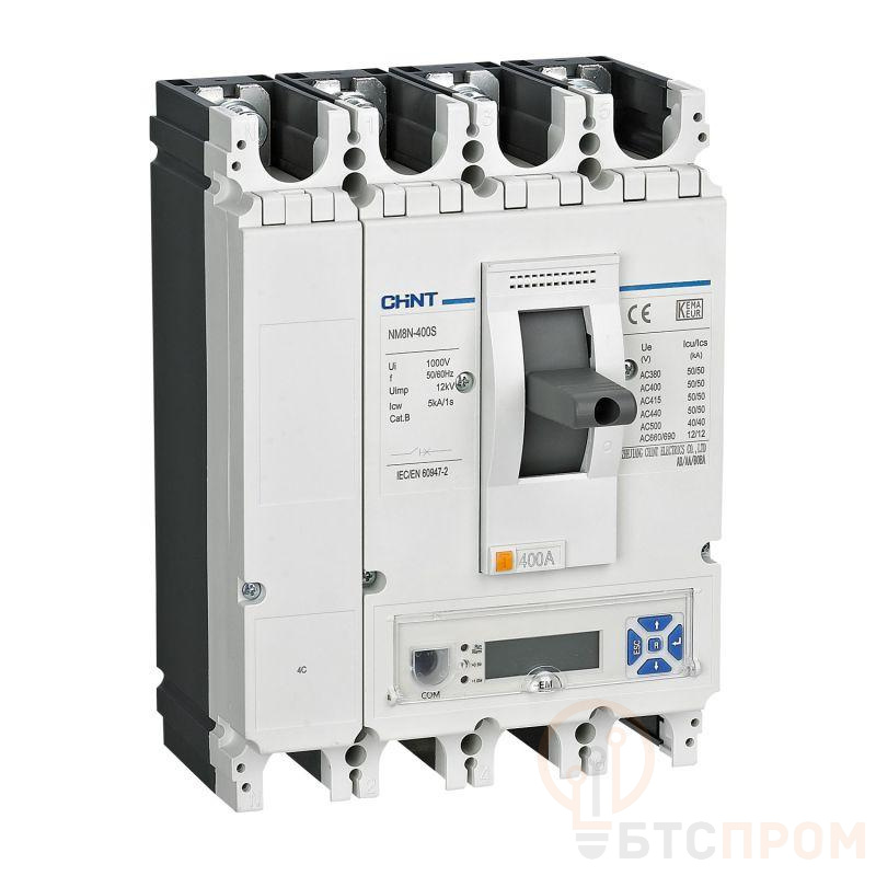 Модель имеет 4 полюса и оснащена электромагнитным расцепителем, что гарантирует точное и быстрое срабатывание. Ключевой особенностью является встроенный ЖК-индикатор (LCD), который предоставляет оперативную информацию о параметрах сети и состоянии устройства, упрощая диагностику и обслуживание. Выключатель соответствует стандарту NM8N-400 и предназначен для монтажа в распределительные щиты.