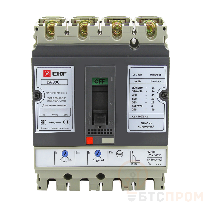 Выключатель автоматический 4п (3P+N) 100/16А 36кА ВА-99C Compact NS PROxima EKF mccb99C-100-16+N фото в каталоге от BTSprom.by