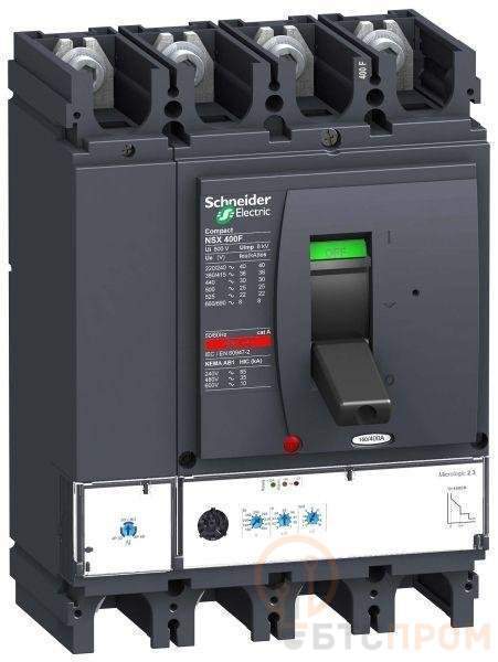 Автоматический выключатель ComPact NSX400N Schneider Electric, 4P4d; номинальный ток 400 А; Icu = 50 кА 380/415 В; Ics=100% Icu; с электронным расцепителем Micrologic 2.3 (защита LSOI); ШхВхГ – 185x255x110 мм; исполнение – стационарный; монтаж - на DIN-рейке или плате. Аппараты ComPact NSX обеспечивают защиту распределительных сетей до 690В от перегрузок и коротких замыканий.