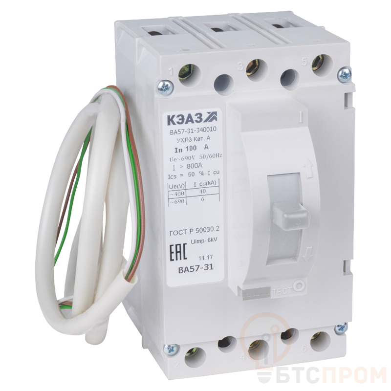 Выключатель автоматический 2п 80А 1200Im 40кА ВА57-31-841810 УХЛ3 220В DC НР=230В AC/220В DC КЭАЗ 138739