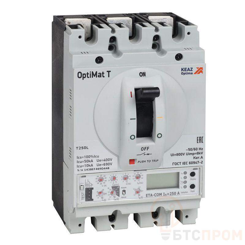Силовой автоматический выключатель в литом корпусе на напряжение до 690 В переменного тока для защиты двигателя OptiMat T250V ETA-M-COM 250A 3P