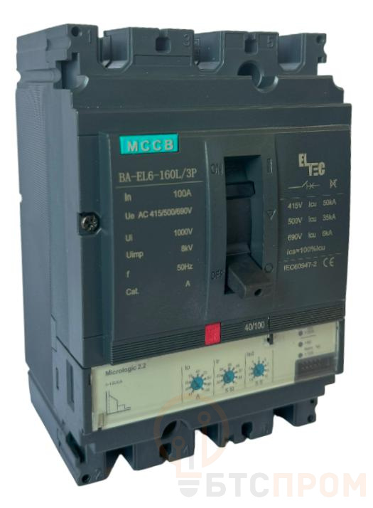 Выключатель автоматический MCCB BA-EL6-160L/3P 100А (электронный Micrologic 2.2 ICU:50KA) ELTEC 1222100