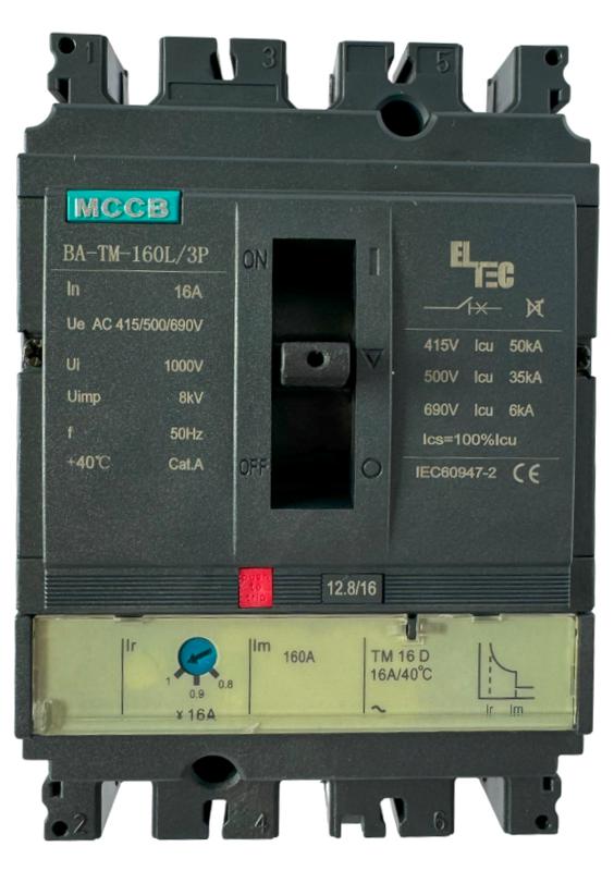 Автоматический выключатель ELTEC MCCB BA-TM-160L/3P на 16А — это надежный трехполюсный аппарат, предназначенный для защиты электрических цепей от токов короткого замыкания и перегрузки в низковольтных распределительных сетях.