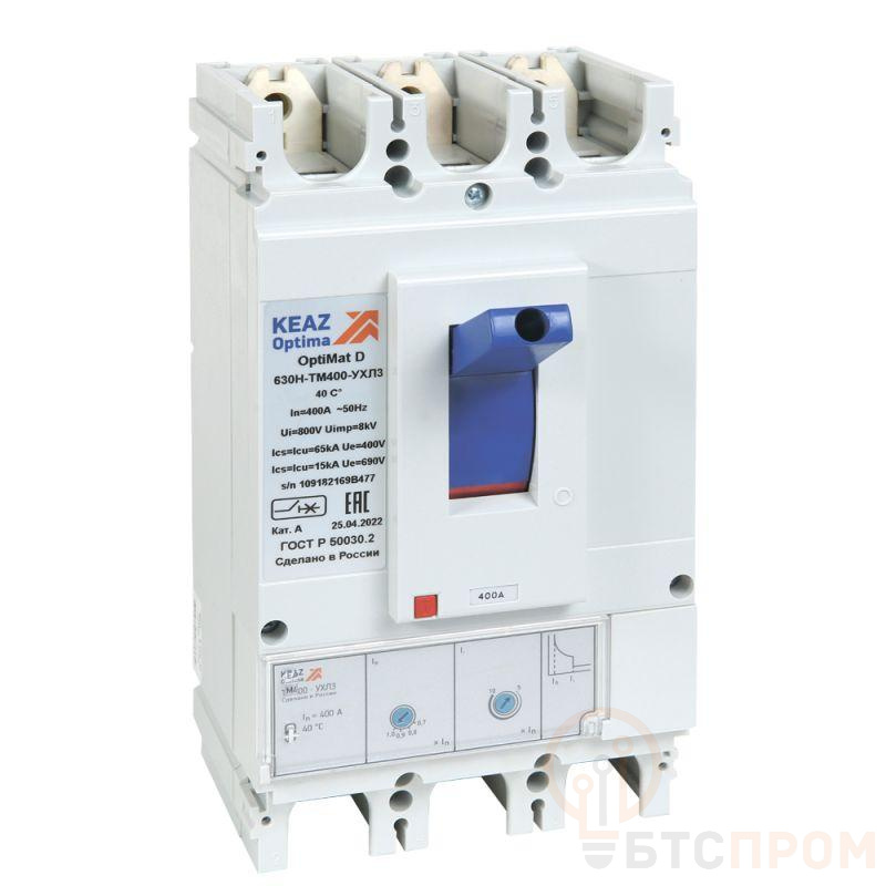 Выключатель автоматический OptiMat D630H-TM400 УХЛ3 КЭАЗ 291474 фото в каталоге от BTSprom.by