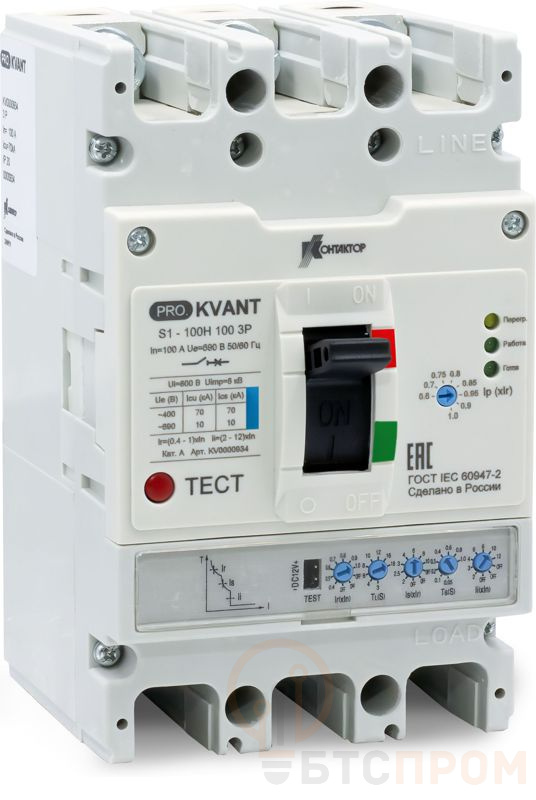 Выключатель автоматический PRO.KVANT S1-100H 3P 100А 70кА в литом корпусе с электрон. расцеп. Контактор KV0000934