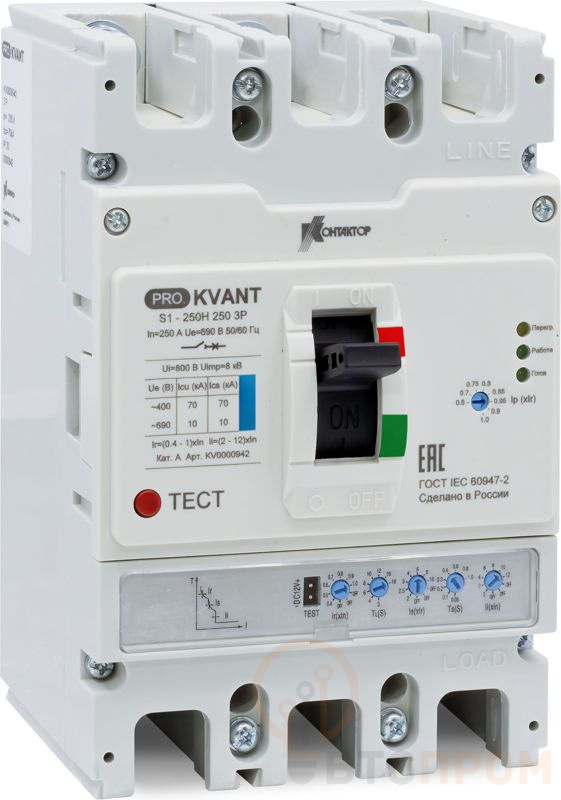 Выключатель автоматический PRO.KVANT S1-250N 3P 250А 35кА в литом корпусе с электрон. расцеп. Контактор KV0000938