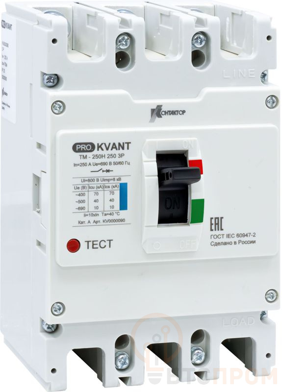 Выключатель автоматический PRO.KVANT TM-250S 3P 250А 50кА в литом корпусе с термомагнит. расцеп. Контактор KV0000082