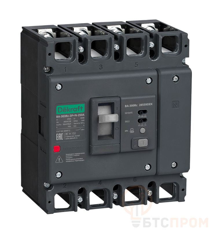 Выключатель автоматический силовой 3п 125А 50кА ВА-303Rc Sel 100/300/500мА 0.4/0.5/1с DEKraft 28546DEK