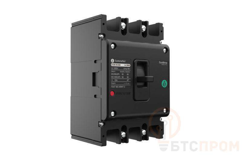 Автоматические выключатели серии SystemePact CCB DC на ток 250 А, 3P, с термомагнитным расцепителем на 100 А; установка – на монтажную плату. Выключатели серии SystemePact CCB DC применяются в сетях постоянного тока для нечастых включений и отключений, а также защиты от перегрузки и короткого замыкания. Они могут быть дополнены стандартными аксессуарами, такими же, как и аппараты переменного тока, а также специальными аксессуарами для последовательного подключения полюсов.