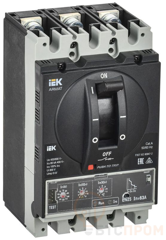 Выключатель автоматический в литом корпусе 3п A 85кА 63А расцепитель электронный стандарт. ARMAT IEK AR-MCCB-3A-085-0063A-ELSC