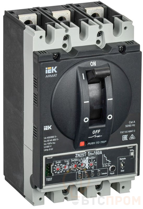Выключатель автоматический в литом корпусе 3п D 50кА 160А расцепитель электронный продвинутый ARMAT IEK AR-MCCB-3D-050-0160A-ELPC