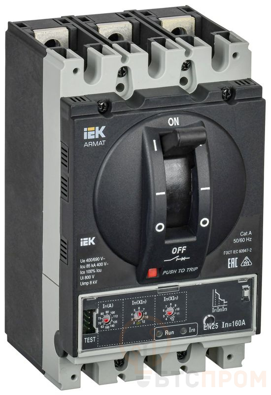 Выключатель автоматический в литом корпусе 3п D 85кА 160А расцепитель электронный стандарт. ARMAT IEK AR-MCCB-3D-085-0160A-ELSC