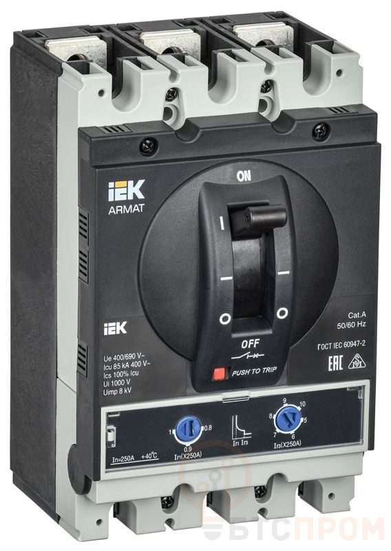 Выключатель автоматический в литом корпусе 3п G 85кА 250А расцепитель термомагнитный регулируемый ARMAT IEK AR-MCCB-3G-085-0250A-ATUC