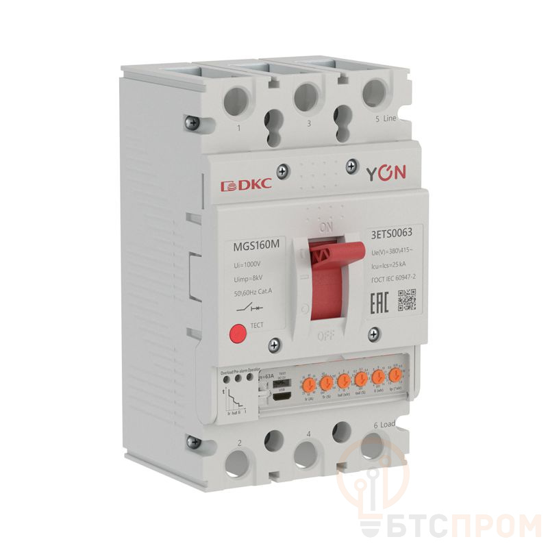 Выключатель автоматический 3п 5-63А 25кА MGS160M 2с электронным расцепителем ETS в литом корпусе YON MGS160M-3ETS0063