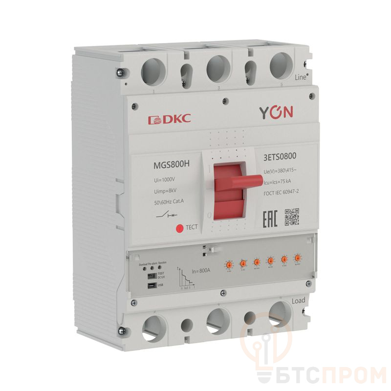 Выключатель автоматический 3п 320-800А 75кА MGS800H с электронным расцепителем ETS в литом корпусе YON MGS800H-3ETS0800