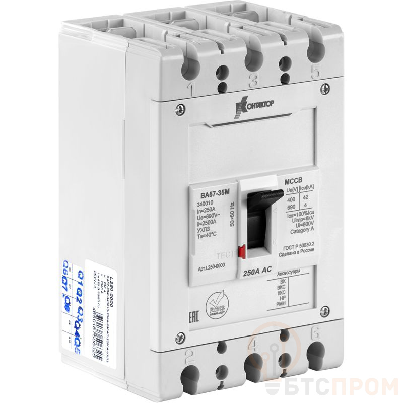 Автоматический выключатель ВА57-35М-340010-200А-2500А в литом корпусе и контактор L250-0100 представляют собой надежное силовое оборудование, предназначенное для комплексной защиты и управления электроцепями.