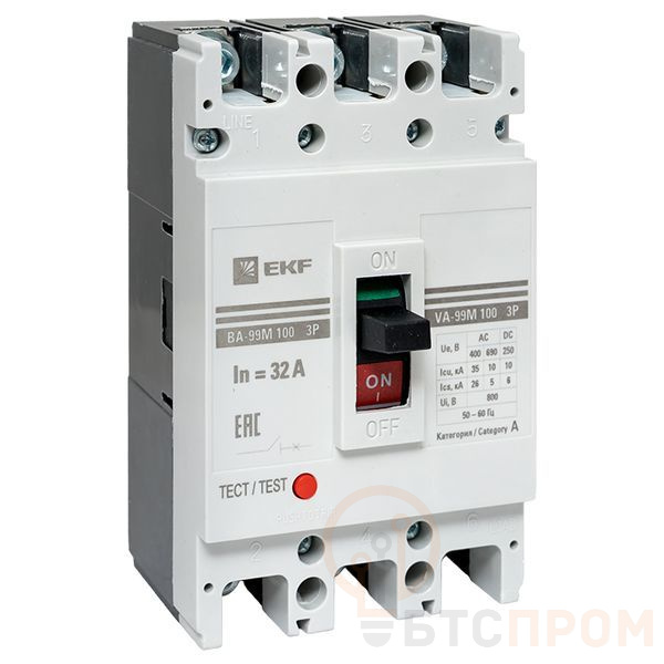 Выключатель автоматический ВА-99М 100/80А 3п 35кА с электромагнитным расцепителем EKF mccb99-100-80m-ma