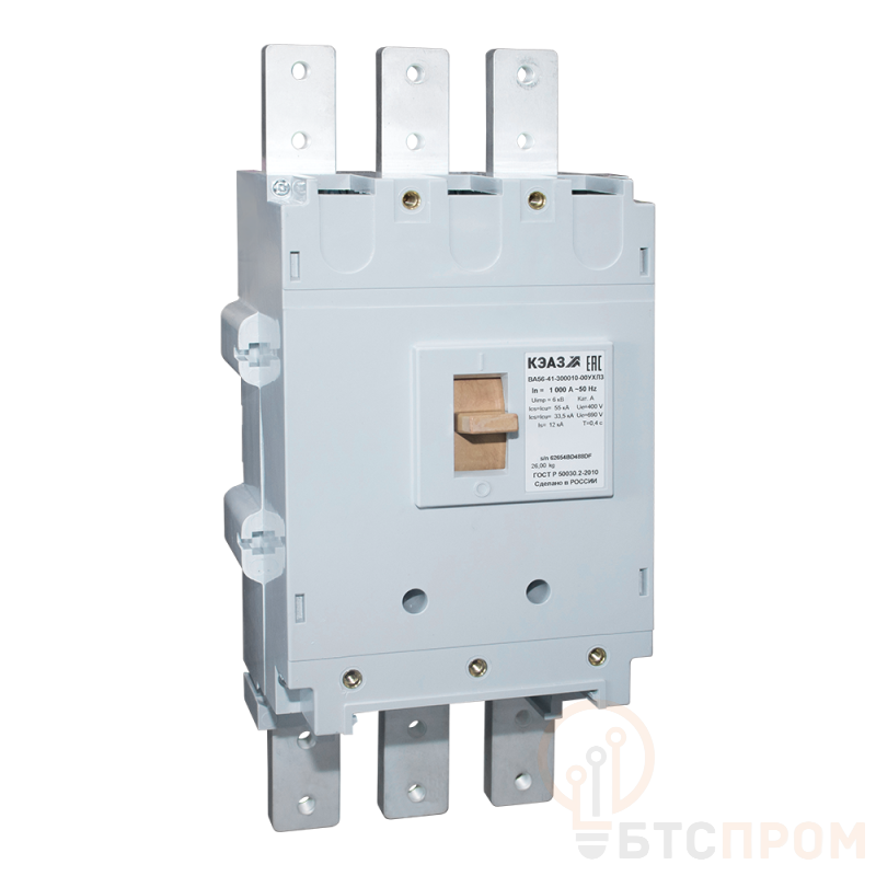 Силовой 3 полюсный автоматический выключатель переменного тока в литом корпусе на номинальный ток 1000 А.