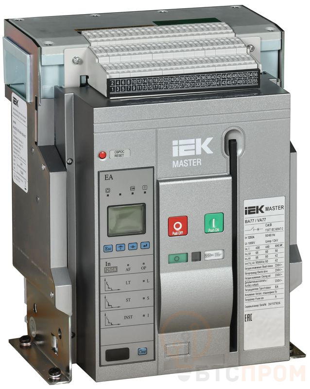 Выключатель автоматический воздушный 3п A 1250А 65кА AC ВА77 F3P EA стац. с комплектом аксессуаров MASTER IEK MI-ACB10-3FA-065-1250-ACF