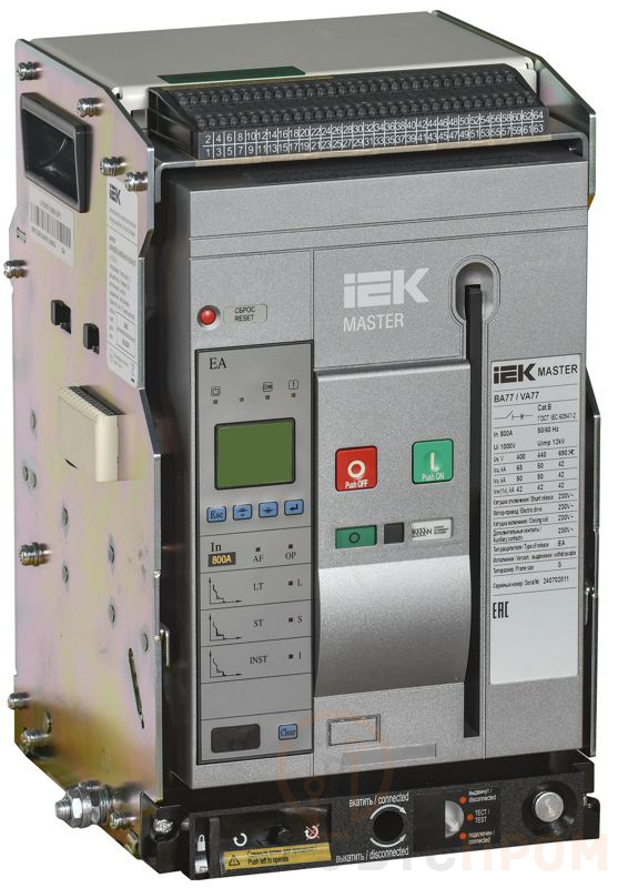 Выключатель автоматический воздушный 3п S 800А 65кА AC ВА77 W3P EA выдвижн. с комплектом аксессуаров MASTER IEK MI-ACB10-3WS-065-0800-ACF