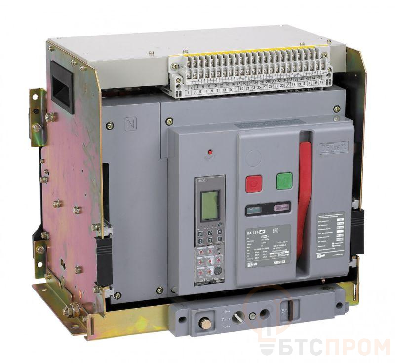 Воздушный автоматический выключатель серии ВА-731 Dekraft; 4P; номинальный ток 800 А; отключающая способность 80 кА, выкатной, блок управления типа H; присоединения задние горизонтальные. В базовую комплектацию входят моторный привод (230 В пер.тока), 4 контакта состояния ВКЛ/ОТКЛ, сигнальный контакт, электромагнит включения (230 В пер.тока), независимый расцепитель (230 В пер.тока), сигнальный контакт положения аппарата в корзине, разделители полюсов и рамка передней панели. Выключатели с блоком управления типа H позволяют осуществлять мониторинг и диспетчеризацию защищаемой сети и нагрузок.