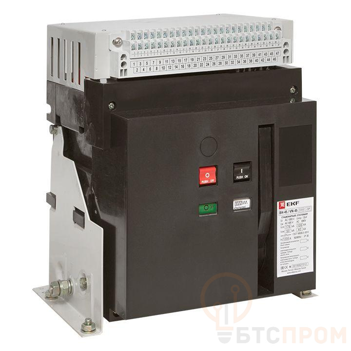 Автоматические выключатели серии BН-45 EKF являются воздушными выключателями с механизмом свободного расцепления и оперирования контактами посредством механизма с пружинным накопителем энергии. Выключатель выполнен в виде механической конструкции, смонтированной на жесткой раме. Основные органы управления и индикации выведены на лицевую панель.