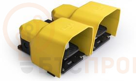 Педаль двойная 2x(1НО+1НЗ) + 2x(1НО+1НЗ) 2 скорости с фиксацией с защитным кожухом (алюм.) желт. цвета основание для рукояти (250В AC 4А) IP65 EMAS PDKA22GG12