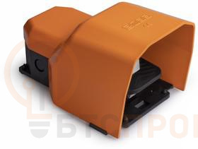 Педаль одиночная 2x(2НО+2НЗ) 2 скорости с фиксацией с защитным кожухом (алюм.) оранж. цвета (250В AC 4А) IP65 EMAS PDKS11GX12T