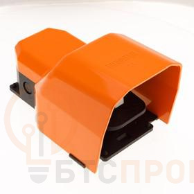 Корпус педали выполнен в оранжевом цвете и оборудован прочной защитной крышкой, которая предохраняет механизм от попадания пыли, стружки и влаги, повышая долговечность и безопасность эксплуатации. Данная педаль идеально подходит для использования со станками, промышленными машинами, подъемными механизмами и другим оборудованием, где требуется надежное и безопасное ножное управление.