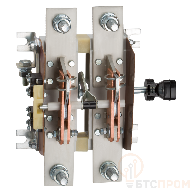 Выключатель-разъединитель 2 полюсный на номинальный ток 1000 А, где установлена несъемная рукоятка, а механическая износостойкость составляет 6300 циклов.